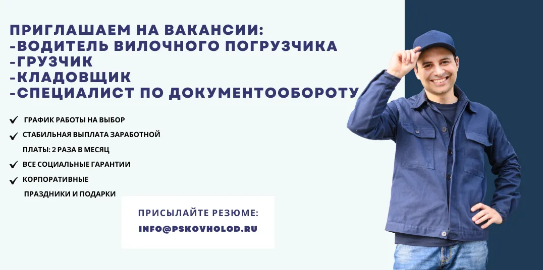 Объединяем профессионалов своего дела, которые стремятся к росту и развитию. Мы стремимся создавать сильную команду из активных и целеустремлённых сотрудников! Ждём Ваше резюме по адресу электронной почты: info@pskovholod.ru